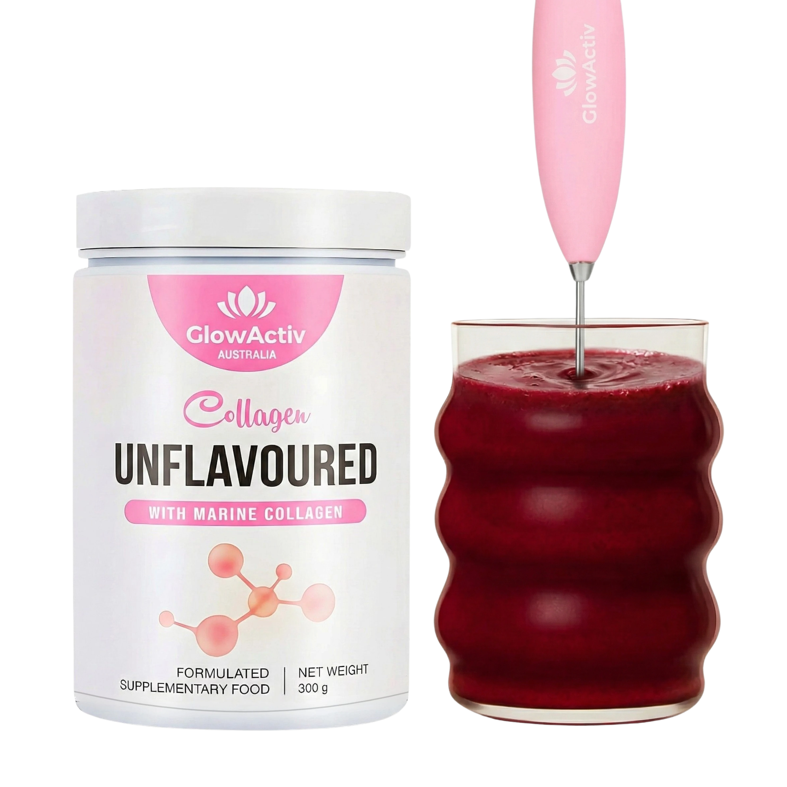 The 3-in-1 Glow Matrix™ is powered by our Tri-Phase Glow Support System™, combining marine collagen, superfoods, and gut support into one simple and tasty coffee-friendly scoop.